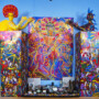 I created this altar for my friend John Pitello who died in December 1993 from liver failure. The angel and demon on top of the boxes  were created from a cast of my own torso, arms and hands. The wings and the halo on the angel were cut from cardboard and covered with casting material to give  them strength. The horns on the demon were shaped and cast the same way then painted with acrylic paint. They signify the duality of good and evil that resides in all of us. We became friends at the age of 12  when we needed a bass player  for a rock and roll band we were starting. The box on your left that holds the angel is john’s life story and memories of mine as we grew up together. The box that holds the demon on your right  tells the story of john’s life as an adult and his final days in the hospital where he died. The painting in the middle is of the crucifixion with his mother Mary and Mary Magdalene at his feet, the two most important women of his life. The ritual of the Day of the Dead is to leave important  objects from the person’s life on the altar, in this case pictures that his young daughters drew for him. His favorite cowboy boots, his TV remote control  so he could watch Star Trek. Different fotos of him and his family.Marlboro cigarettes,  seltzer water, crystals, his funeral card and other objects that were important to him.